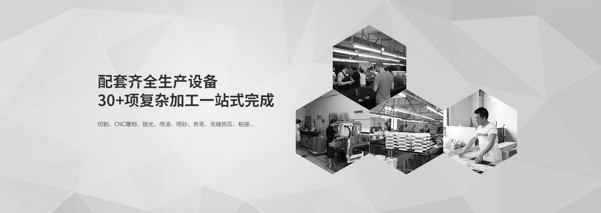 可提供切割、CNC雕刻、抛光、喷油、喷砂、热弯、无缝热压、粘接等数十种加工工艺+客户